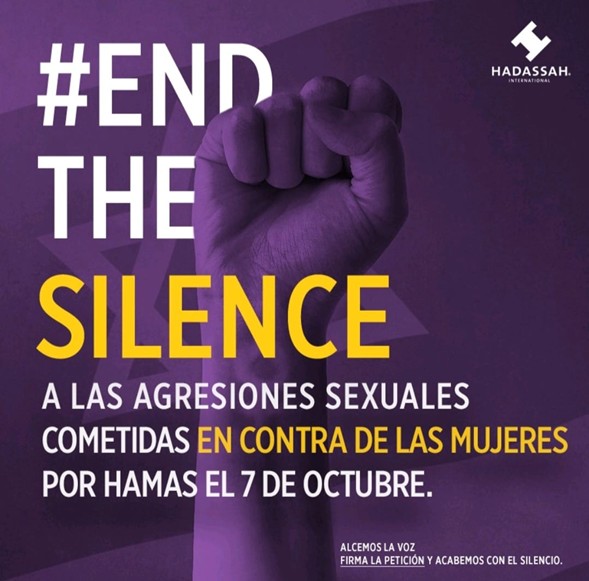 En el marco del Día Internacional de la Mujer, Hadassah ha tomado la decisión de liderar la campaña END THE SILENCE mediante el llamado a la firma de una petición que será entregada en las sede central de ONU del día 8 de marzo solicitándole al Secretaria General del organismo que condene e investigue el