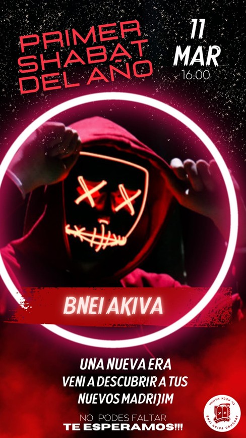 Bnei Akiva arranca este sábado 11 de marzo sus actividades 2023. Desde este sábado y todos los sábados de 16 a 19hs en Yavne (Cavia 2800). Premios, Sorpresas, Aprendizajes, Comida y mucho más! Para más información comunicarse al 097323188. Comenzamos el año a lo grande! En Bnei Akiva te esperamos con diversión asegurada. Desde este