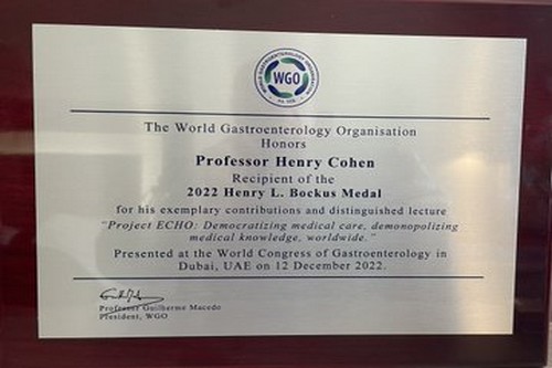 El Comité Central Israelita del Uruguay felicita al Dr. Henry Cohen, uno de los gastroenterólogos más dedstacados a nivel mundial, en ocasión de recibir la Medalla Henry Bockus que otorga la Organización Mundial de Gastroenterología, siendo el primer latinoamericano en obtener esta importante distinción, que enorgullece a la comunidad científica y la sociedad uruguaya en