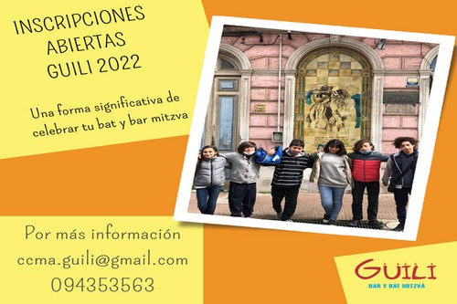 Están abiertas las inscripciones en GUILI para los chicos que estén interesados en preparar su Bar o Bat Mitzvá en 2022 desde una visión del Judaísmo Humanista. Por más información: ccma.guili@gmail.com, o por el teléfono 094 353563.