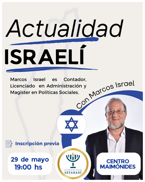 ¿Qué está pasando realmente en Medio Oriente? Una charla con Marcos Israel, Director de la Institución Nacional de Derechos Humanos y ex Presidente del CCIU, sobre el tema. Una mirada clara, cercana y sin filtros sobre la actualidad israelí. Jueves 29 de mayo, a las 19 hs. en el Centro Maimónides. Inscripción previa en el