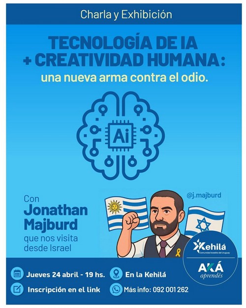 Este jueves a las 19 hs. estará en la Kehilá Jonathan Majburd, el caricaturista argentino-israelí que desde el 7 de octubre de 2023 libra una “guerra” con sus armas contra el antisemitismo y el terrorismo, y la distorsión de la información. Para participar podés anotarte en el link https://bit.ly/JonathanMajburdKehil%C3%A1 y por más información llamar