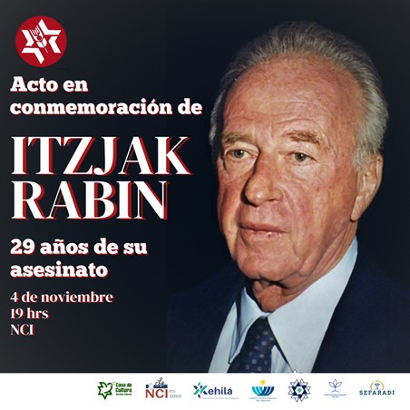 Habonim Dror invita al acto en conmemoración de Itzjak Rabin (Z’L), a 29 años de su asesinato. El acto será hoy lunes 4 de noviembre a las 19 hs. en la NCI, cuenta con el auspicio del CCIU y la inscripción es obligatoria por el link https://forms.gle/RSfg6sZwrMLmMf9x9. Agregamos artículo sobre Rabin publicado por la Agencia