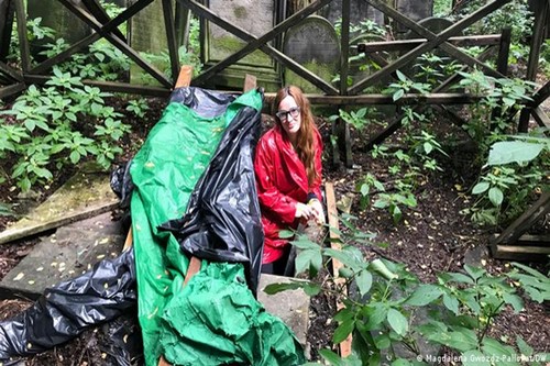 Deutsche Welle Un árbol, un refugio bajo una cocina, una tumba en un cementerio: una investigadora polaca estudia lugares en que se escondieron judíos durante la II Guerra Mundial, que dan cuenta de la férrea voluntad de sobrevivir. En la foto: la investigadora Natalia Romik (autora: Magdalena Gwozdz-Pallokat/DW) Un alto muro y un portón negro