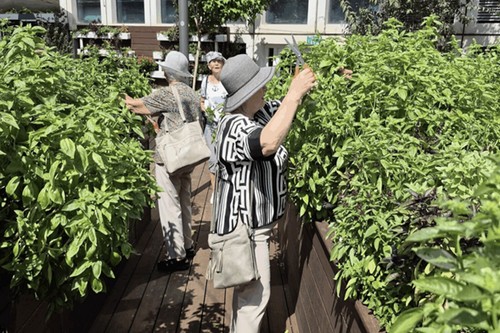 Con la construcción y el trauma de la posguerra por todas partes, las organizaciones sin fines de lucro y las comunidades se están movilizando para crear espacios verdes en lugares inesperados. Sobre el Edificio Clal en la calle Jaffa, en el centro de Jerusalem, a pocos pisos del bullicio de la ciudad, con el tráfico