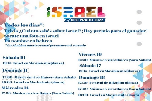 En el día de hoy comienza la exposición agroindustrial ExpoPrado 2022 en predio de la Asociación Rural del Uruguay en el Prado. En ese marco, se dará hoy la apertura del Stand de la Embajada de Israel, el que tendrá en los próximos días múltiples actividades. Todos los días: Trivia ¿Cuánto sabés sobre Israel? Sacate
