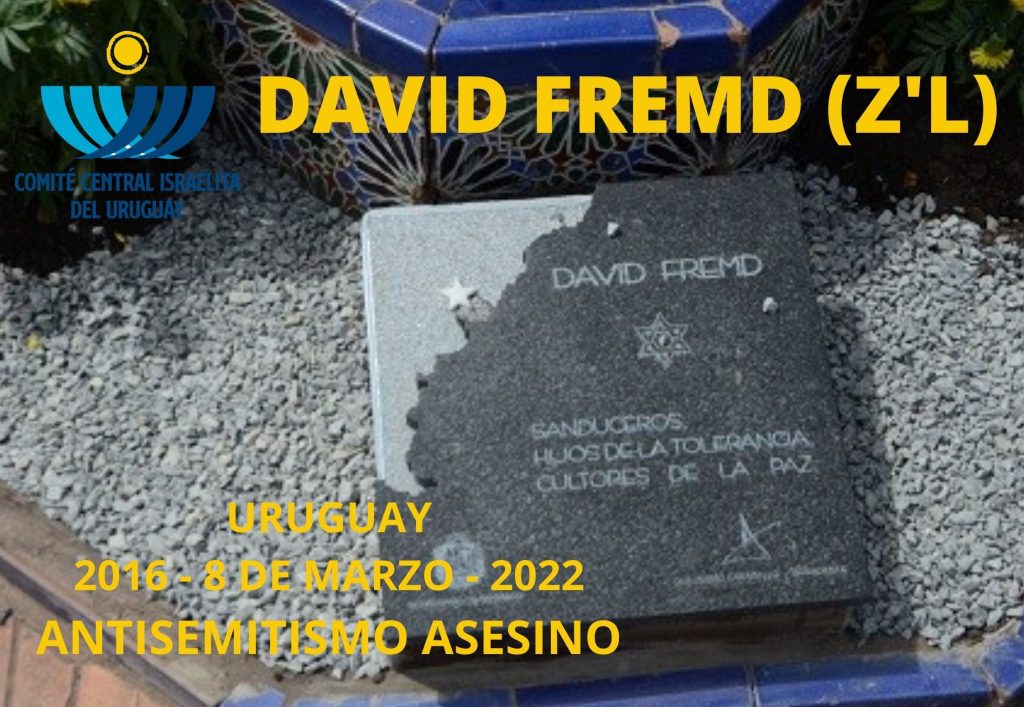 A 6 años del brutal asesinato a David Fremd (Z´L), ultimado por su condición de ser judío, el Comité Central Israelita del Uruguay trasmite su saludo y solidaridad a la familia y el compromiso a estar alerta ante cualquier acto de fundamentalismo étnico o religioso en el país. Continuaremos, como hasta ahora, luchando contra la
