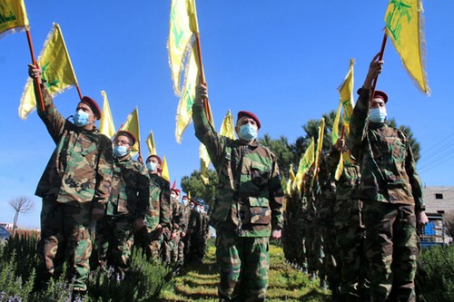 Desde 2019 los países latinoamericanos lentamente han comenzado a designar como grupo terrorista a Hezbolá, la controvertida organización político-militar que opera con base en el Líbano desde hace cuatro décadas. Luis Lacalle Pou decidió mantener la posición del país y no declarar terrorista a la organización islámica musulmana. En la foto: Miembros de Hezbolá celebran un desfile militar en la ciudad de Riyaq en el valle de Bekaa en el Líbano, el 13 de febrero de 2021. Foto: AFP.